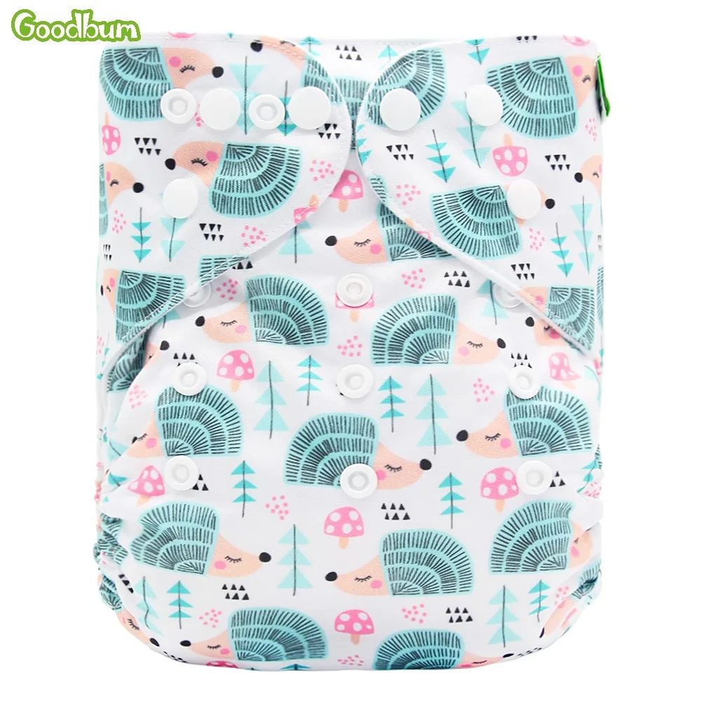 Name: Goodbum-pañal de bolsillo de tela ajustable para bebé, lavable, con estampado de erizo, broches en doble fila