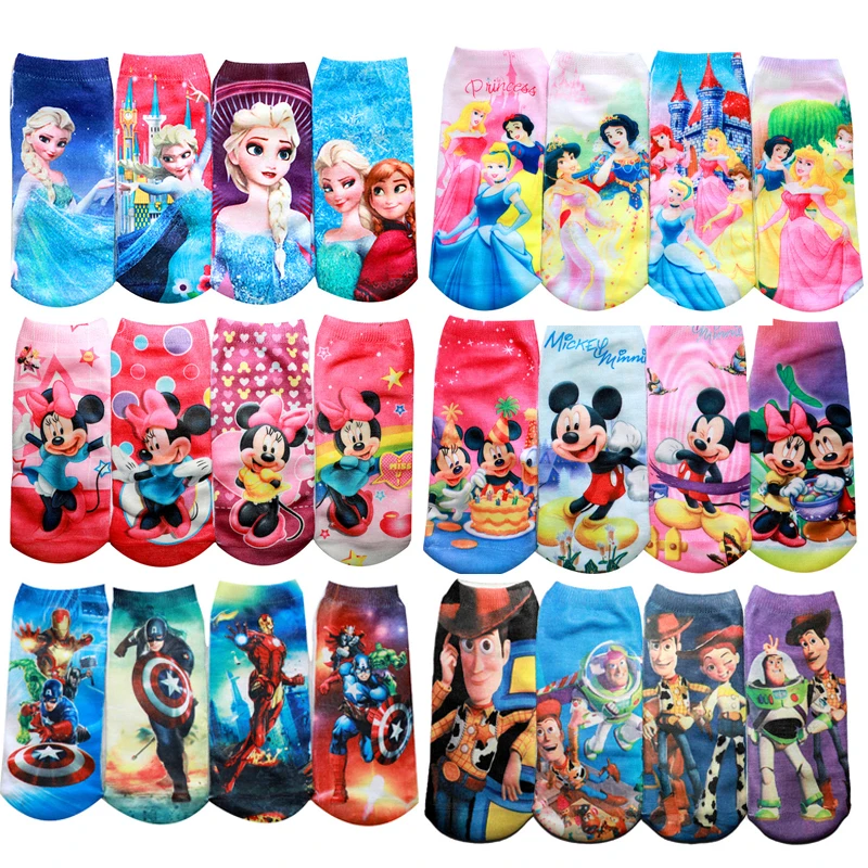 Name: Disney calcetas cortas con diseños de dibujos animados para niños random1 par Aisha Anna Mickey Minnie Woody nieve barco blanco calcetines para niños niñas de 2 a 8 años